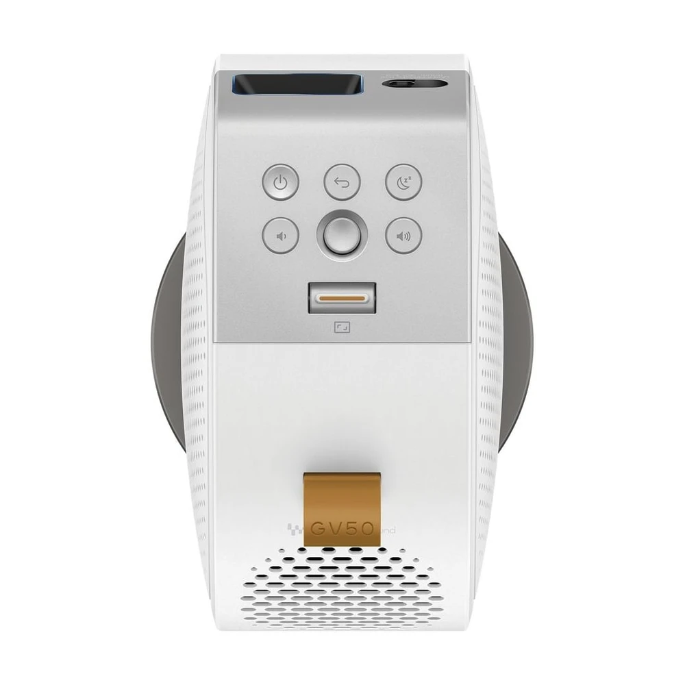Der GV50 bietet vielseitige Konnektivität mit HDMI, USB Type A und USB-C Anschlüssen. Die intelligente Bildschirmanpassung ermöglicht Bildschirmgrößen von 30 bis 120 Zoll, schon aus zwei Metern Entfernung. Genieße komfortable Steuerung und müheloses Aufladen, sowohl drinnen als auch draußen.