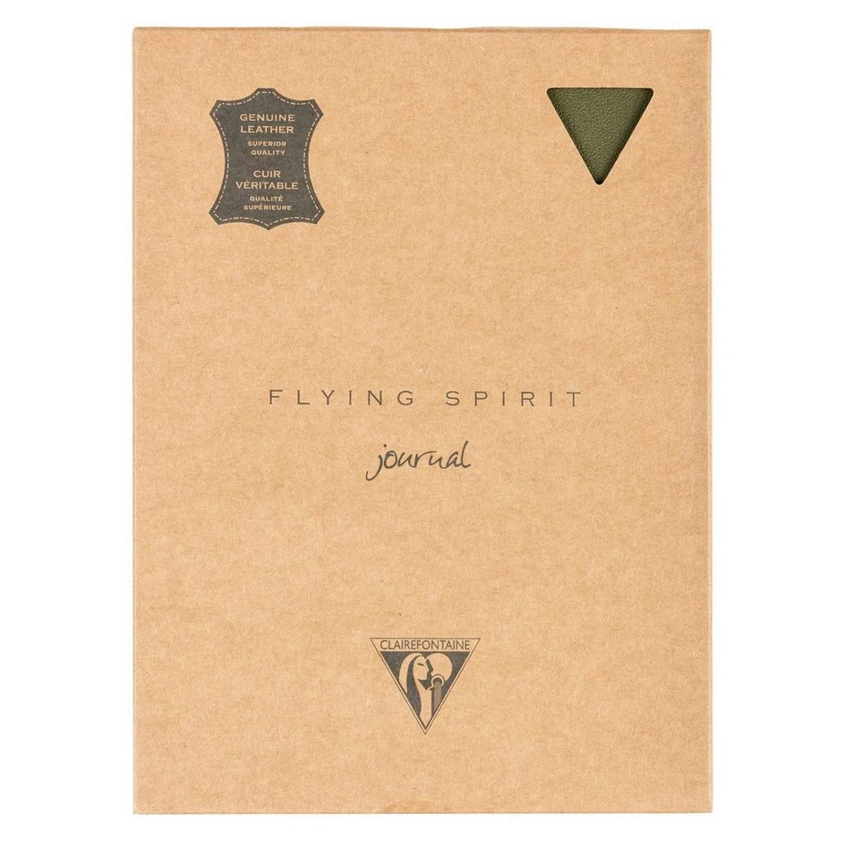 Clairefontaine Flying Spirit Notizbuch A5, Ledereinband, 90 Blatt, 90g, Khaki