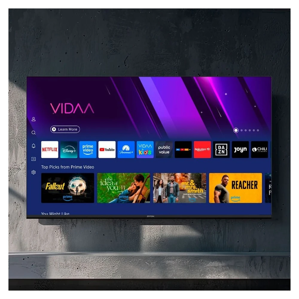 Der DYON Smart 40 VX-2 LED TV bietet ein Full-HD Erlebnis auf einer Bildschirmdiagonale von 40 Zoll. Mit dem neuen VIDAA Betriebssystem genießen Sie eine intuitive Bedienung und Flexibilität. Das integrierte Smart Portal ermöglicht den einfachen Zugriff auf beliebte Streamingdienste wie Netflix, Prime Video und YouTube. Darüber hinaus können Sie über den App Store weitere Apps wie Disney+ und DAZN installieren.