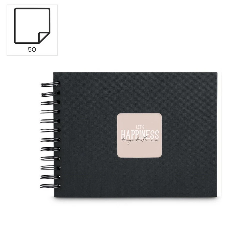 Die Spiralbindung des Albums ist so konzipiert, dass sie genügend Platz für Fotos und andere Erinnerungen bietet, ohne dass sich der Deckel anhebt. Der Spiralverschluss befindet sich an der Innenseite, sodass keine Albumblätter herausfallen können. Die schwarzen Innenseiten sind ideal für das Einkleben von Fotos, Anekdoten und anderen Erinnerungen wie Tickets und Zeichnungen. Das Album eignet sich besonders gut als Scrap-Book.