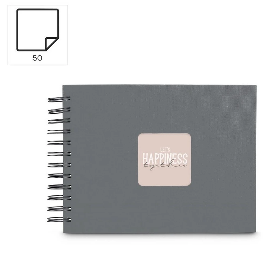 Das Cover aus Strukturpapier ist sowohl haptisch als auch optisch ansprechend. Die genau angepasste Spiralbindung sorgt dafür, dass genügend Platz für Fotos und Erinnerungen vorhanden ist, ohne dass sich der Deckel hebt. Der Spiralverschluss an der Innenseite verhindert das Herausfallen der Albumblätter.