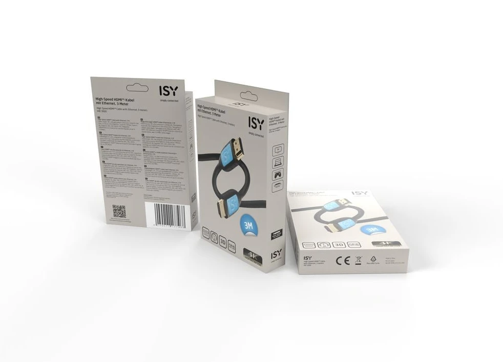 Das ISY IHD-3000 HDMI-Kabel bietet eine High-Speed Verbindung mit einer Länge von 3 m. Es unterstützt eine maximale Videoauflösung von 4Kx2K@60Hz und ist ideal für den Anschluss von Geräten mit HDMI-Anschluss.