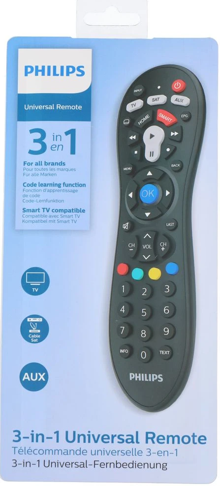 PHILIPS SRP3013/10 Universal-Fernbedienung, 3-in-1, Lernfunktion, Schwarz